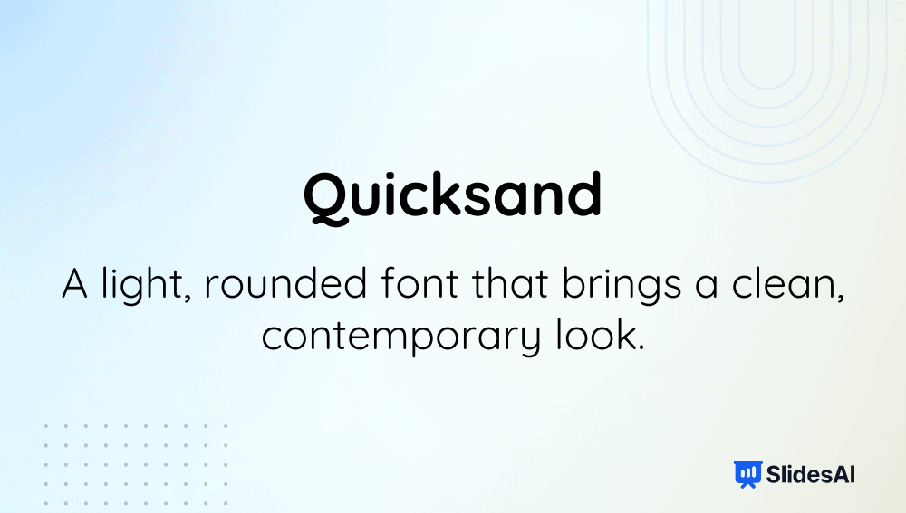 | Quicksand | Sans-serif | 5 | 63 | Quicksand is a sans serif font that has become a popular choice for designers everywhere due to its friendly and approachable look. These features make it a versatile option for both display and small text. It is suitable for everything from websites to print materials |