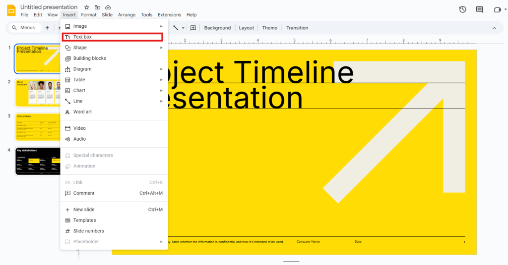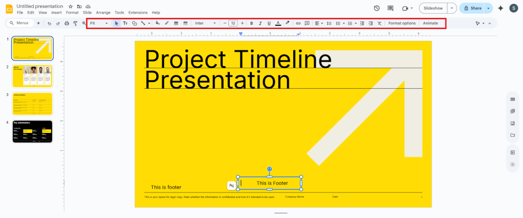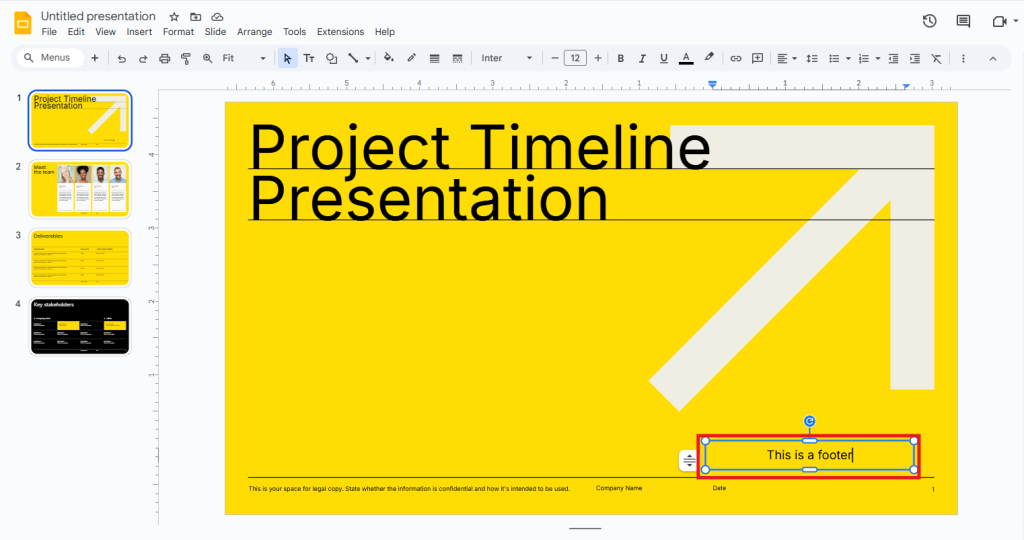If you only need a footer on a specific slide, you can add it manually. Follow these steps to understand how to add a footer in Google Slides on an individual slide:
