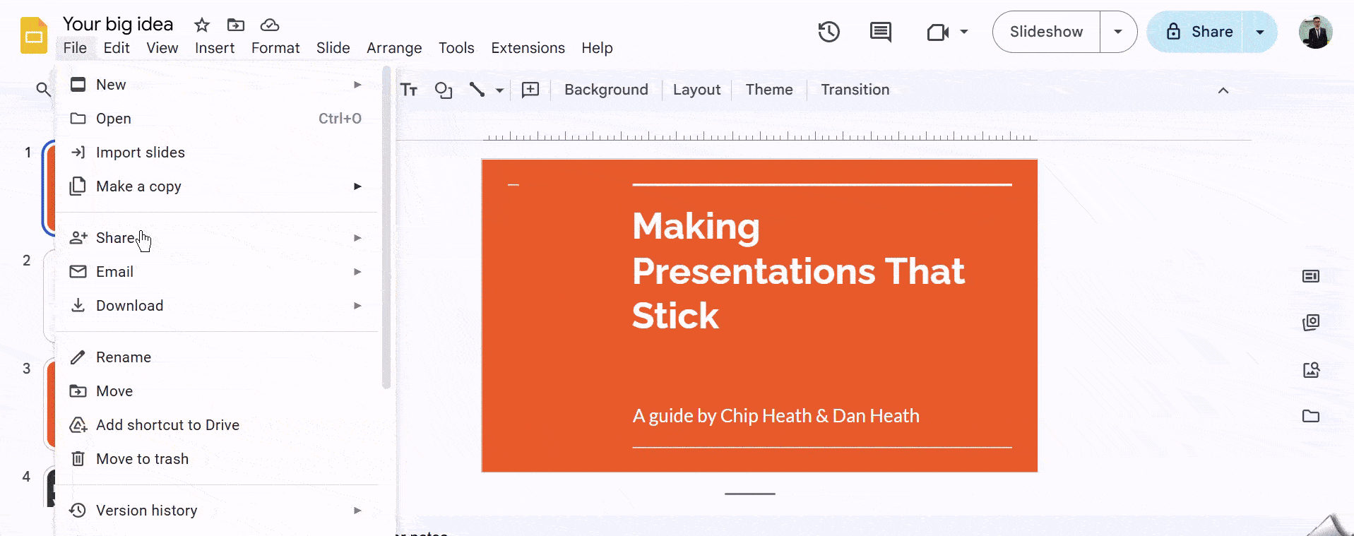 - Click on File > Download > Microsoft PowerPoint (.pptx).